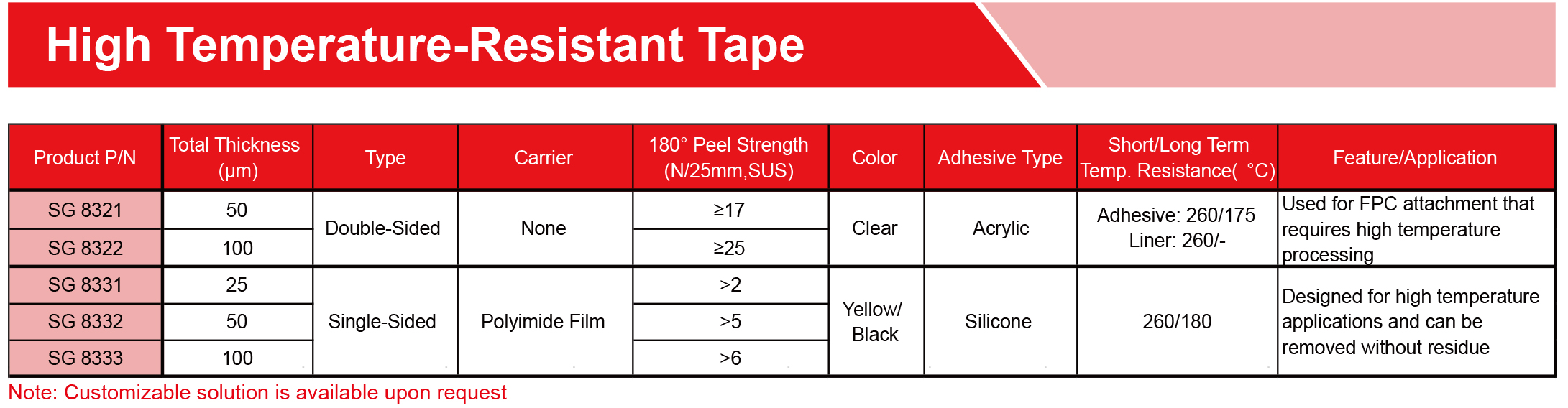 提供各種膠帶,由PET、無紡布、泡沫、涂有丙烯酸、硅樹脂、橡膠、熱熔、熱轉化粘合劑的PI基材制成。可提供各種寬度、長度和釋放襯墊,以滿足特定需求,專為工業、商業和家庭應用的特殊環境而設計。