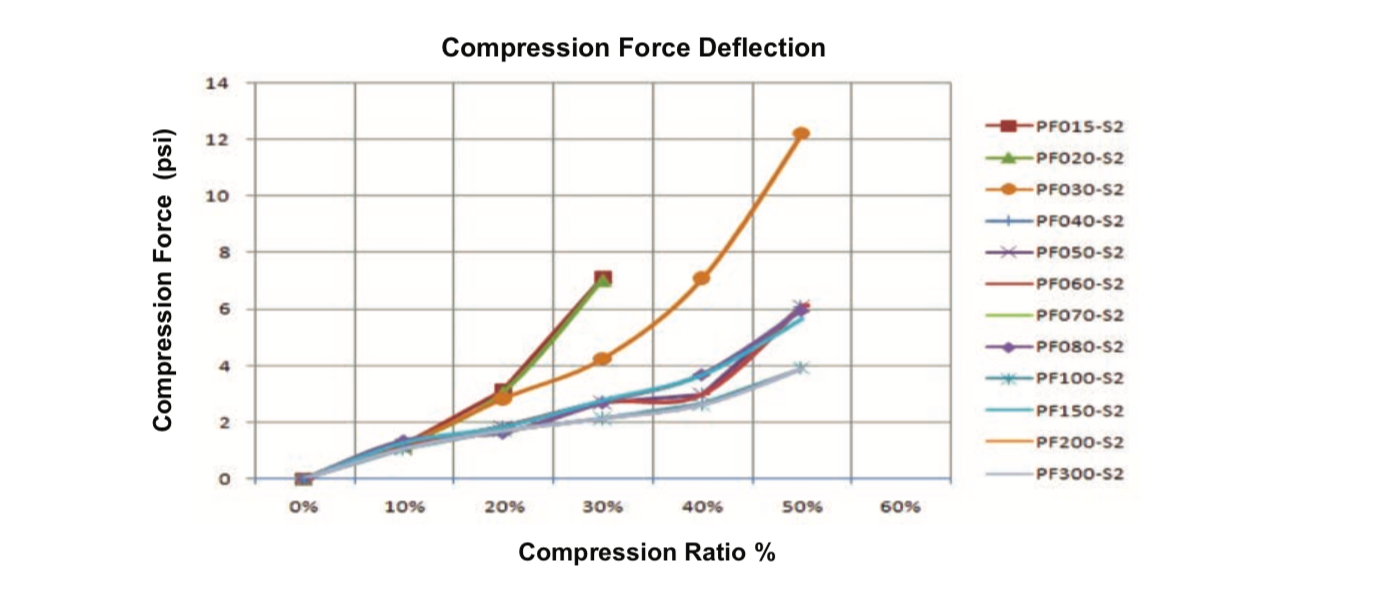 TM PF-S2 系列是一種柔軟、緩慢回彈的泡棉,用于電子設備應用中的緩沖、保護性密封和長期間隙填充。S2系列泡棉具有極低的壓縮永久變形、高密封性能和優異的沖擊吸收性能。" />